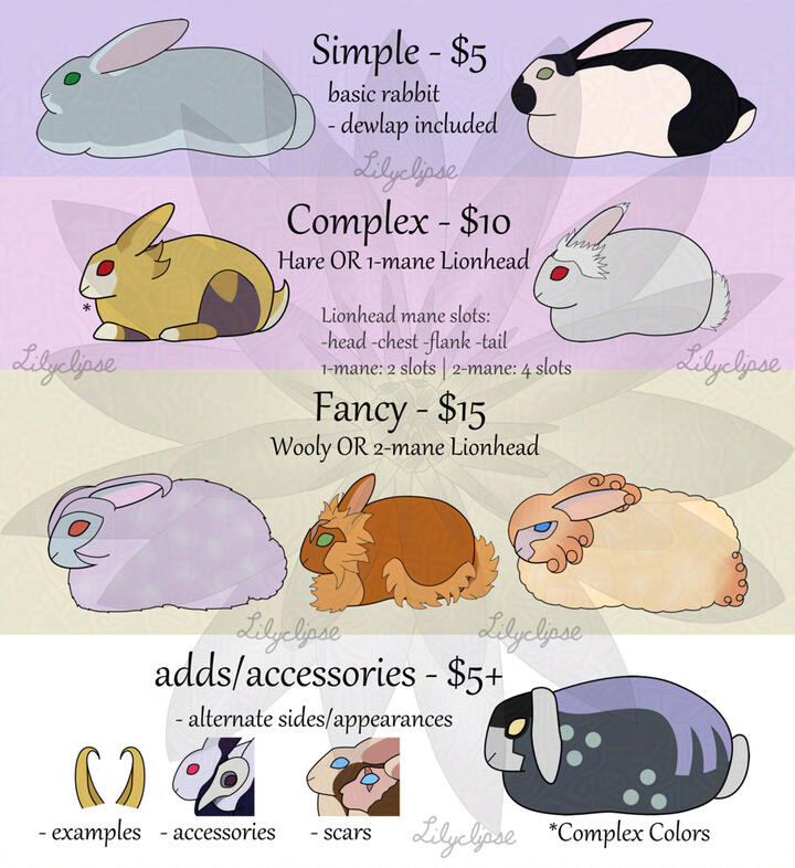My commissions are currently limited to rabbit designs, be they based on preexisting characters or designing original rabbits. Also willing to draw irl rabbits! (In the latter case, please provide multiple photos if possible.)You can commission me directly through Ko-fi, or contact me through DMs!